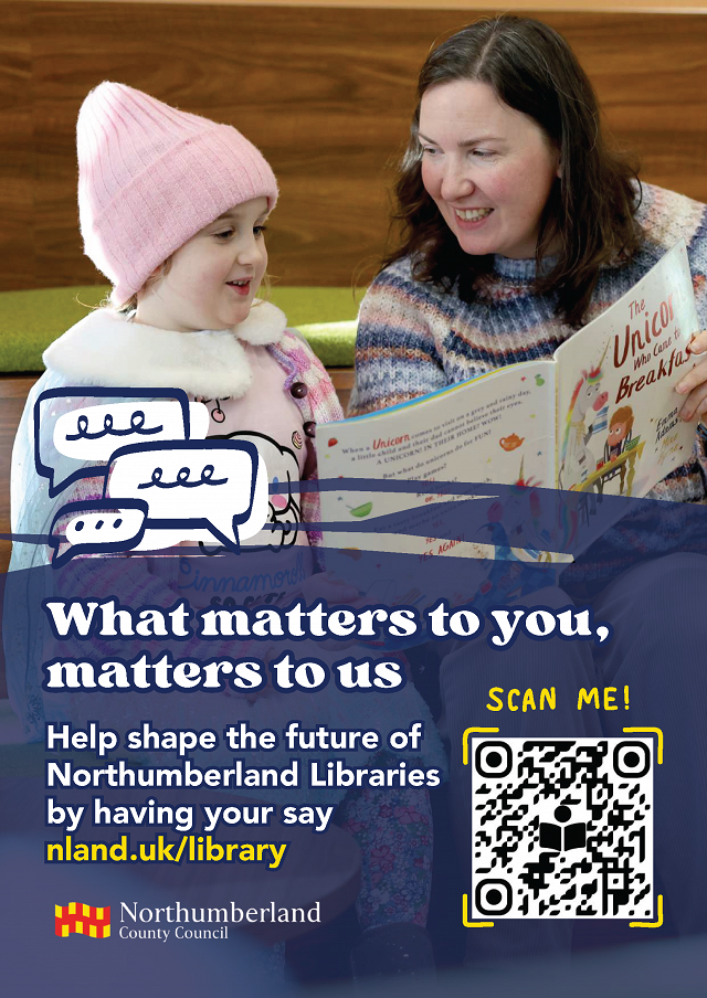 Help shape the future of Northumberland Libraries by having your say nland.uk/library (Link opens in a new windows)
